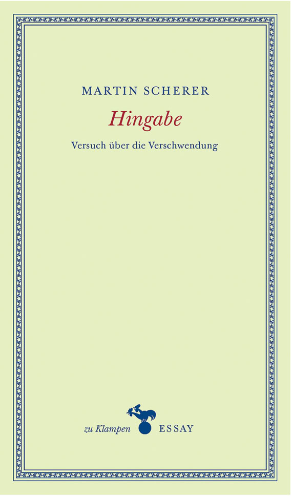Martin Scherer lässt sich von solchen Befunden nicht beeindrucken. Stattdessen sucht er nach einem Gegengewicht zur Beliebigkeit unseres spätmodernen Zeitgeistes. Ein fast schon in Vergessenheit geratener Begriff, der für pure Anti-Ökonomie steht, soll ihn dabei leiten: Hingabe.
